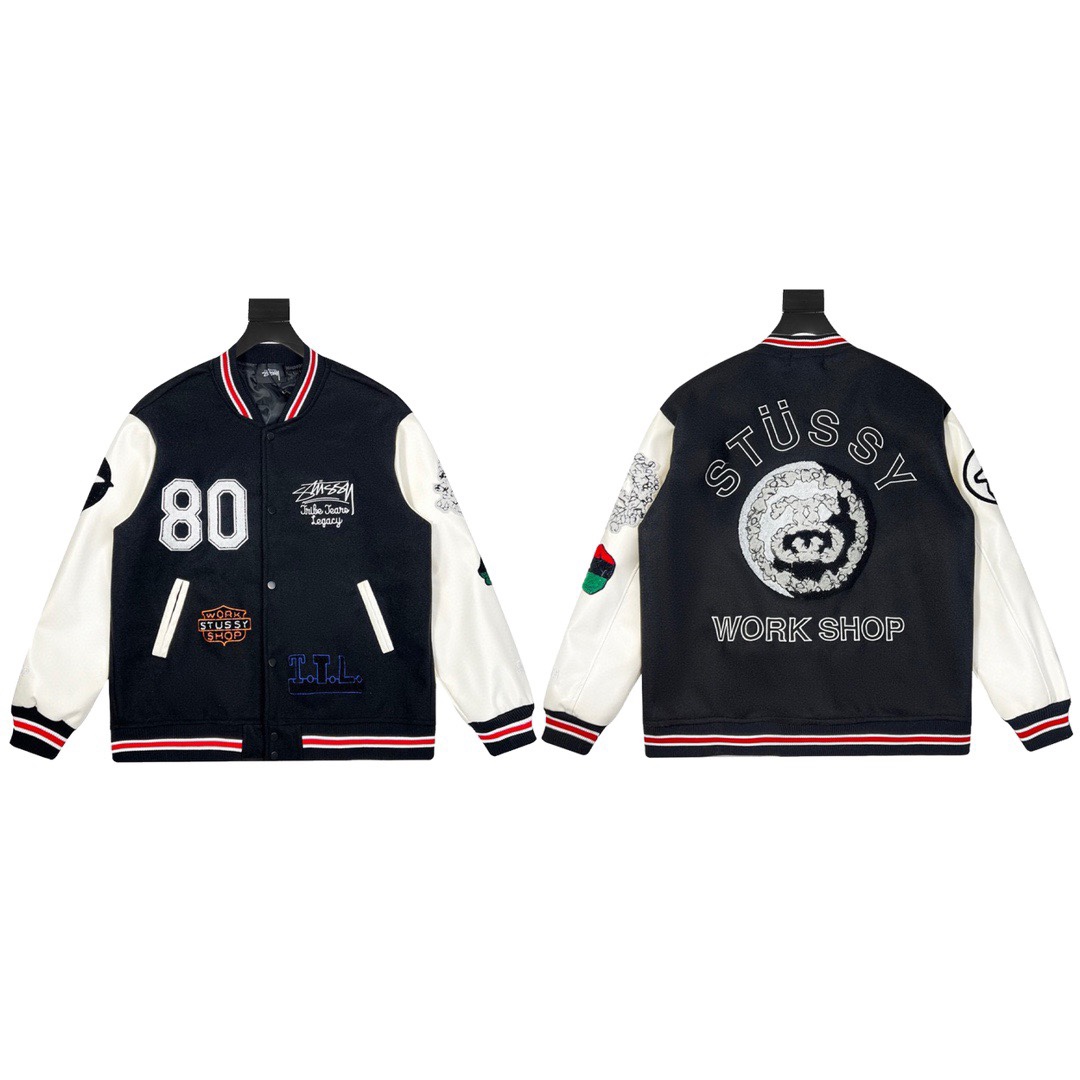 스투시 x 아워레가시 x 데님 티어스 TTL 바시티 자켓 블랙