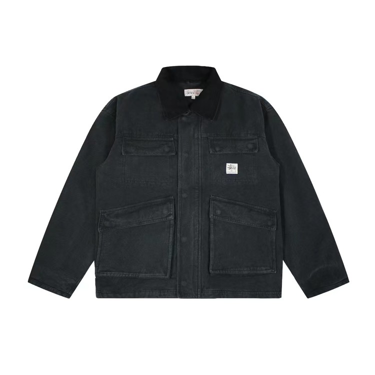 스투시 워시드 캔버스 샵 자켓 블랙